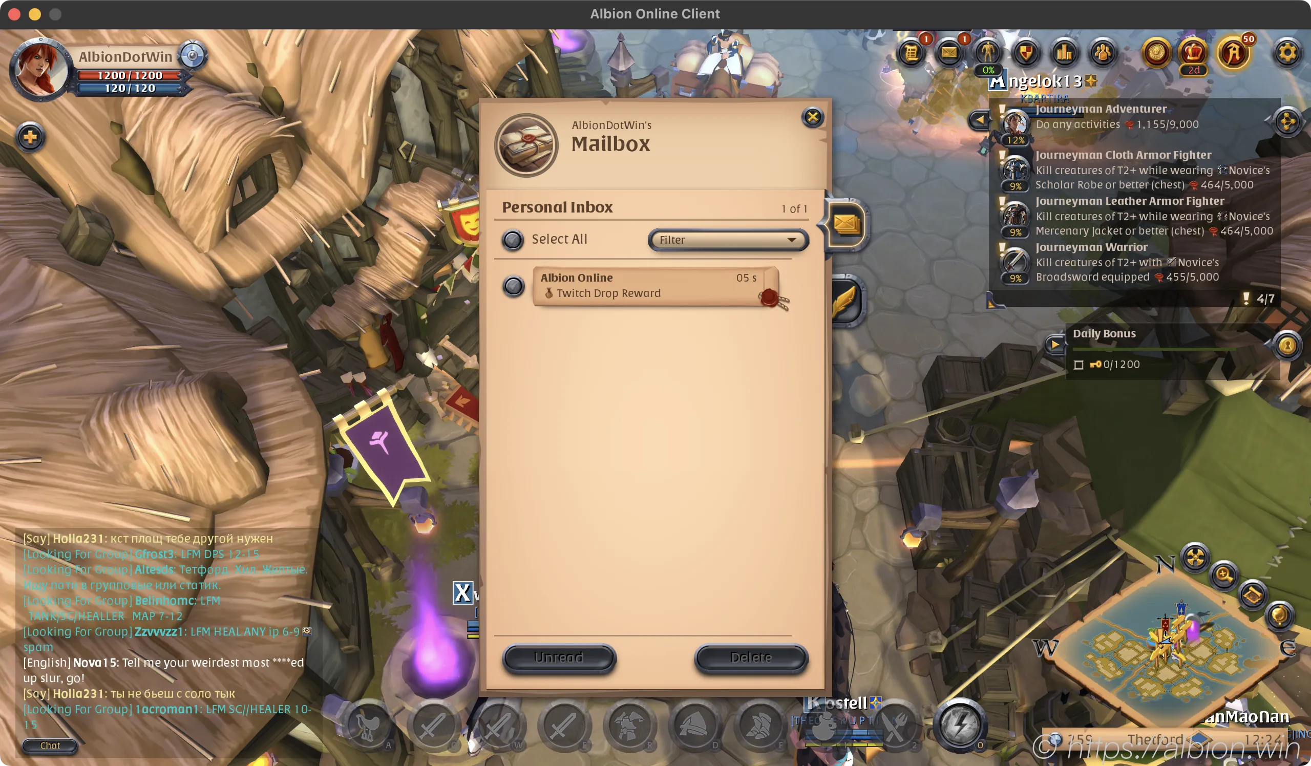 Upon selecting “Claim” in the previous window, you will be directed to your mailbox within the game. Here, you should find a new mail from Albion Online containing your Twitch Drop reward. To open the mail and claim your reward, simply double click on it.